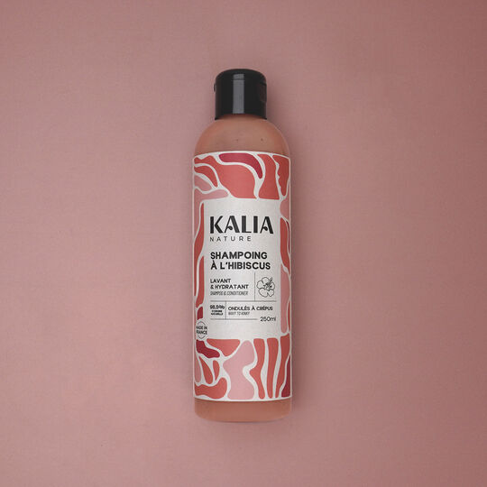 Le shampooing à l'hibiscus Kalia Nature nettoie tout en douceur les cheveux texturés bouclés, frisés ou crépus.